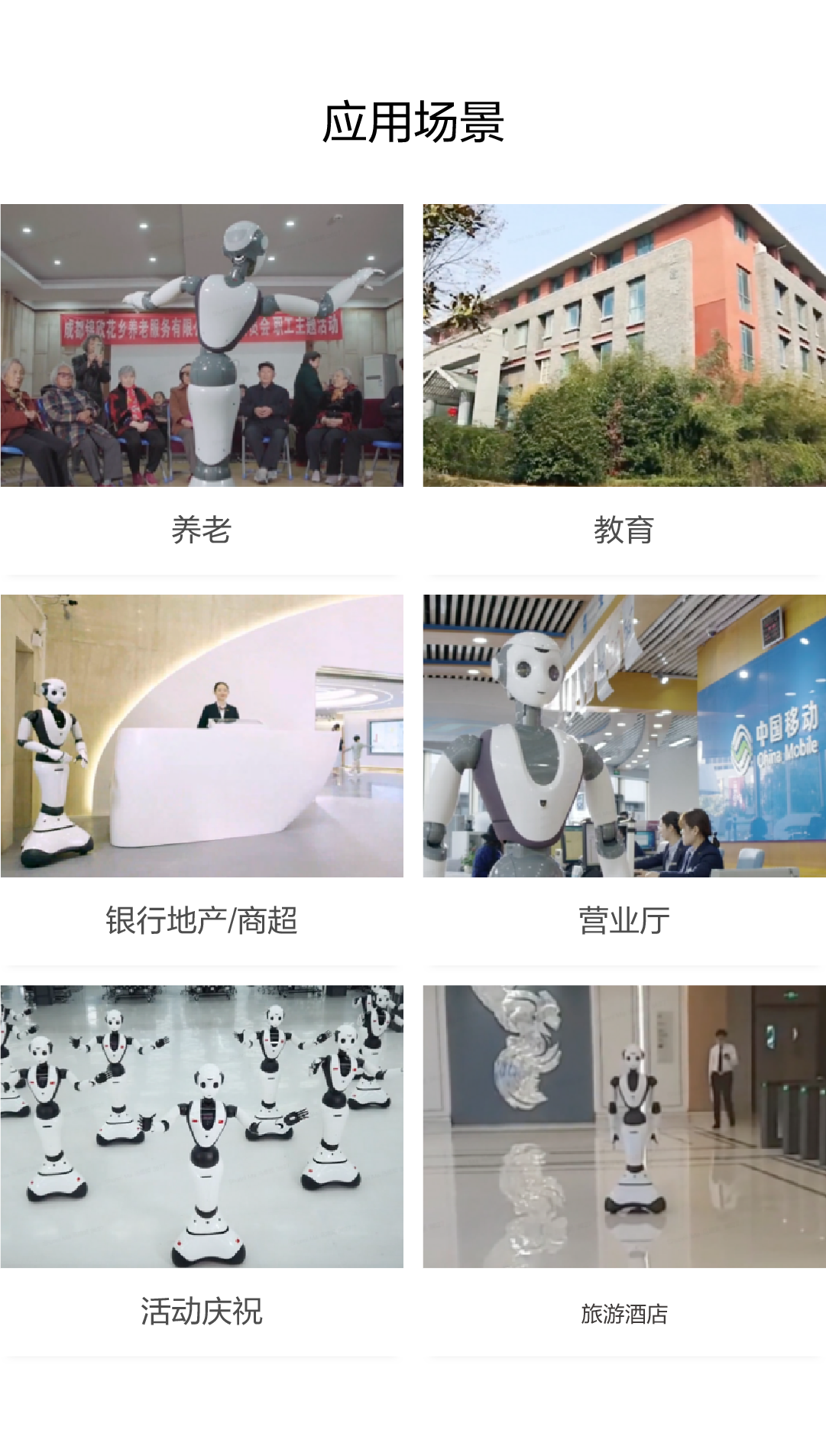 为各类客户提供迎宾接待、引导讲解、群舞演绎、业务办理、养老陪伴、教学科研等应用服务。